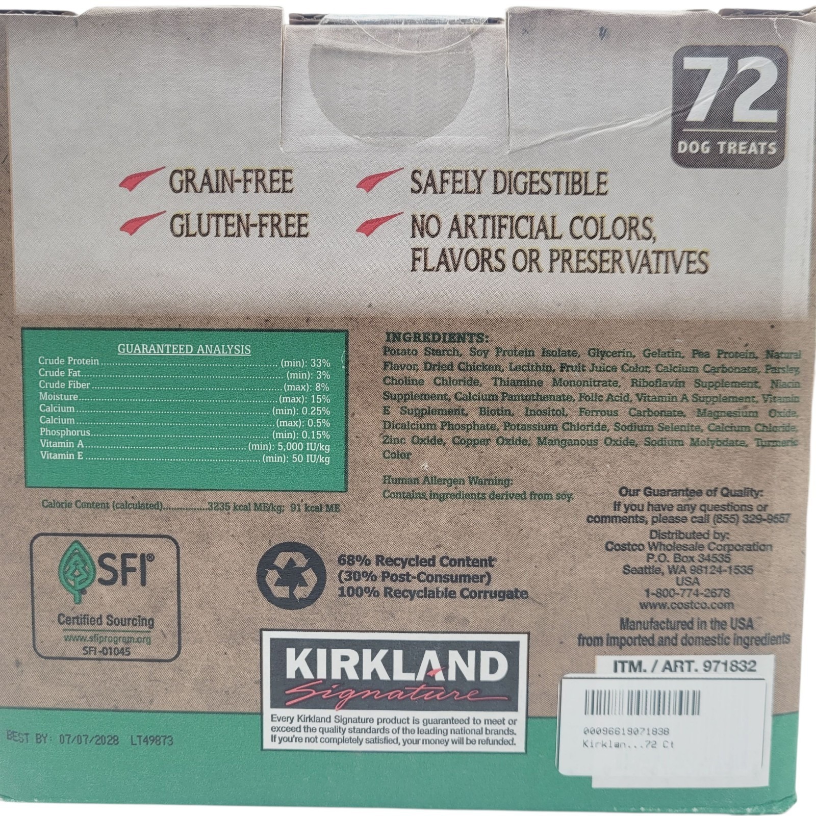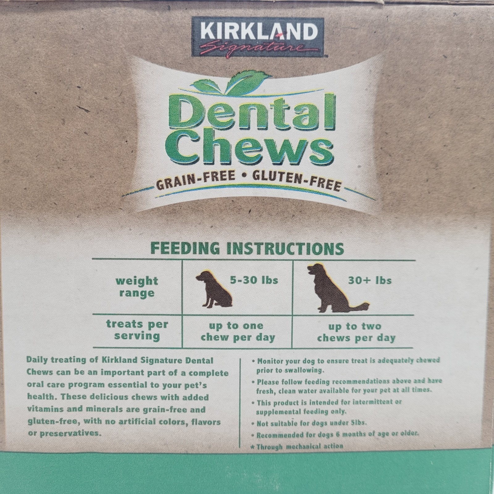* 72-count box of Kirkland Signature dental chews